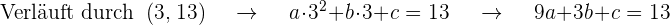 Wir lösen das Gleichungssystem (3x3) und erhalten: