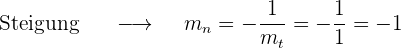 parallel zur Winkelhalbierenden ist, bedeutet das für die Steigung