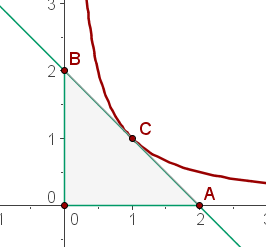 Bestimme die Fläche des Dreiecks, das durch die Koordinatenachsen und die Tangente an der Kurve