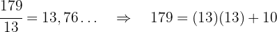 Die Zahl 179 ist eine Primzahl, da sie nicht durch 2, 3, 5, 7, 11 teilbar ist. Wir dividieren durch 13: