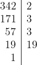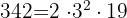Wir addieren zu jedem der Exponenten der Faktoren von 342 eine Einheit und multiplizieren dann die erhaltenen Ergebnisse