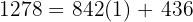 c 1278 und 842: Zuerst teilen wir das größte (1278) durch das kleinste (842). Wenn es keinen Rest gibt, ist 842 die größte gemeinsame Zahl. In diesem Fall erhalten wir