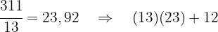 Die Zahl 311 ist eine Primzahl, weil sie nicht durch 2, 3, 5, 7, 11 teilbar ist. Wir dividieren durch 13: