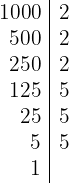Die Division geht genau auf und wir erhalten den ggT (1278,842) = 2.