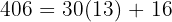 Wir erhalten einen Rest von 406, also wiederholen wir den Vorgang und teilen den Divisor(436) durch den Rest(406), wobei wir einen Rest von 30 erhalten. Also ist es notwendig, den Vorgang zu wiederholen. Dieses Mal teilen wir 406 durch den Rest 30 und erneut geht die Division nicht genau auf