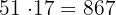 Berechne alle Vielfachen von 17 zwischen 800 und 860.