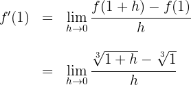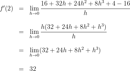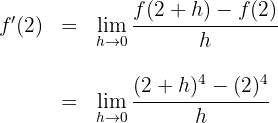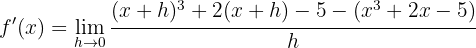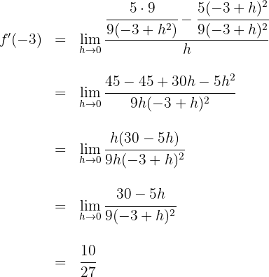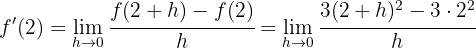 Wir setzen den Wert von in die Funktion und in die Definition der Ableitung ein: