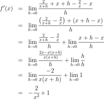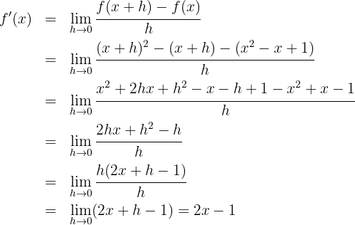 Wir berechnen die Ableitung der Funktion, indem wir die Definition anwenden: