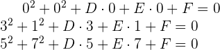 Der Umkreis muss durch jeden der Punkte verlaufen. Dies bedeutet: Wenn die Werte für und