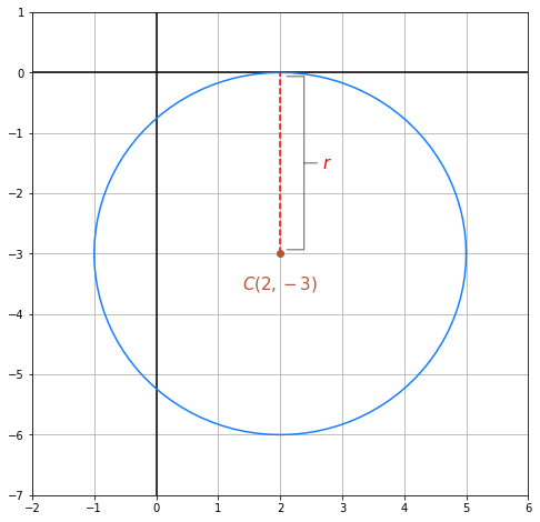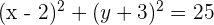Bestimme die Gleichung des Kreises, der seinen Mittelpunkt bei (2, -3) hat und der die x-Achse tangiert.
