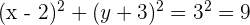 Daher muss der Radius des Kreises 3 sein. Die Kreisgleichung lautet also: