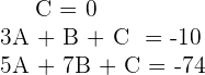 Das vorhergehende System ist äquivalent zu folgendem Gleichungssystem, nachdem die Konstanten, die nicht mit ,