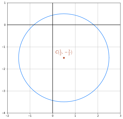 Somit ist der Radius . Die folgende Abbildung zeigt den Kreis graphisch dargestellt: