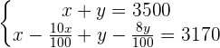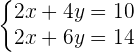 Wir stellen fest, dass es sich um ein System mit zwei Gleichungen mit zwei Unbekannten handelt. Wir gehen also davon aus, dass das System nur eine einzige Lösung hat. Somit:
