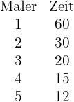 Umgekehrt würden die Maler dreimal mehr Zeit benötigen, wenn nur ein Drittel von ihnen arbeiten würde. 1 Maler würde also 60 Tage benötigen. Da wir nun wissen, wie lange 1 Maler benötigen würde, können wir die folgende Tabelle aufstellen: