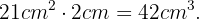 Nun multiplizieren wir einfach diese Fläche mit der Breite, die 2 cm beträgt, um das Volumen zu erhalten: