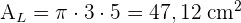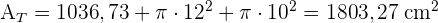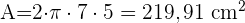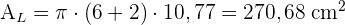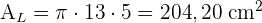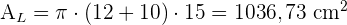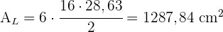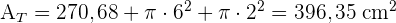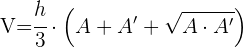 5 Wir berechnen die Fläche A der größeren Grundfläche und die Fläche A' der kleineren Grundfläche und addieren sie zusammen mit der Seitenfläche, um die Gesamtfläche zu erhalten