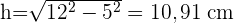 und die Höhe mit dem Satz des Pythagoras berechnet.