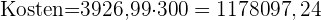 2 Wir multiplizieren die Oberfläche mit den Kosten pro