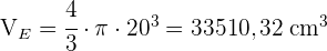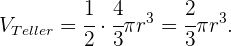 1 Eine Halbkugel ist die Hälfte einer Kugel, ihr Volumen wäre also gleich: