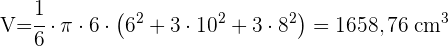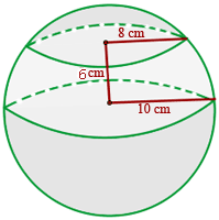 Berechne die Fläche und das Volumen einer Kugelschicht, deren Umfänge einen Radius von 10 cm und 8 cm haben und deren Abstand 6 cm beträgt.