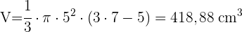 Berechne die Seitenfläche, die Gesamtfläche und das Volumen eines Kegels mit einer Höhe von 4 cm und einem Radius der Grundfläche von 3 cm.