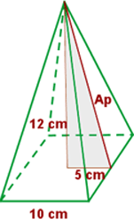Berechne die Seitenfläche, die Gesamtfläche und das Volumen einer viereckigen Pyramide mit einer Kantenlänge von 10 cm und einer Höhe von 12 cm.