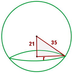Berechne die Fläche des Kreises, der sich ergibt, wenn man eine Kugel mit dem Radius 35 cm durch eine Ebene schneidet, die 21 cm vom Mittelpunkt der Kugel entfernt ist.