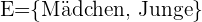 - Wenn das Ergebnis eines Experiments darin besteht, das Geschlecht eines Neugeborenen zu bestimmen, ist der Ergebnisraum gegeben durch