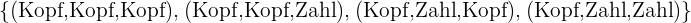 - Beim Werfen von 3 Münzen, die nacheinander geworfen werden, ist ein Elementarereignis