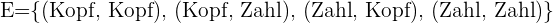 - Wenn bei dem Experiment 2 Münzen nacheinander geworfen werden, dann