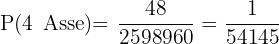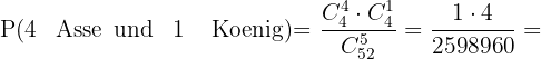 D.h. die Arten, beim Ziehen von 5 Karten 4 Asse zu erhalten, sind , daher ist die Wahrscheinlichkeit