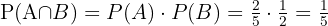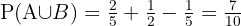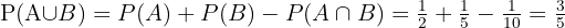 Die SchülerInnen A und B besitzen eine Wahrscheinlichkeit von 1/2 und 1/5, eine Prüfung nicht zu bestehen. Die Wahrscheinlichkeit, dass sie beide die Prüfung nicht bestehen liegt bei 1/10. Ermittle, wie wahrscheinlich es ist, dass einer der beiden SchülerInnen die Prüfung nicht besteht.