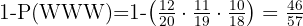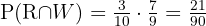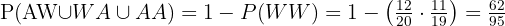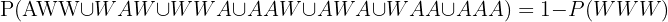 Beim Ziehen von zwei Zetteln kann man als Ergebnis WW, AW, WA oder AA erhalten. Man könnte die Wahrscheinlichkeit für AW, WA und AA errechnen und sie danach miteinander summieren, aber am praktischsten ist es, die Wahrscheinlichkeit für WW zu errechnen und das Ergebnis von 1 abzuziehen: