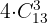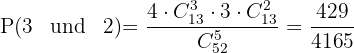 Für die Möglichkeit, 3 der 13 Karten einer Farbe zu ziehen, rechnet man und da es vier Farben gibt, steht