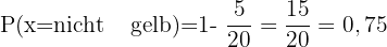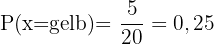 Da 5 der 20 Kugeln gelb sind, liegt die Wahrscheinlichkeit bei:
