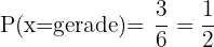 Von den 6 möglichen Ergebnissen gibt es also 3 Möglichkeiten, eine gerade Zahl zu erhalten. Die Wahrscheinlichkeit beträgt also