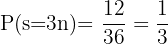 Es gibt 12 Möglichkeiten, ein Vielfaches von 3 zu würfeln, das heißt, die gesuchte Wahrscheinlichkeit ist