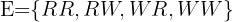 E = {WW, WR, WG, WS, RW, RR, RG, RS, GW GR, GG, GS, SW, SR, SG, SS}