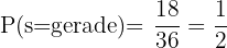 Es gibt 18 Möglichkeiten, eine gerade Summe zu erhalten, daher ist die Wahrscheinlichkeit
