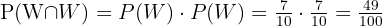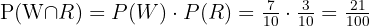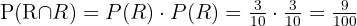 Beim Ziehen einer Kugel, die im Anschluss ersetzt wird, sind die Bedingungen genau dieselben, d.h. die Ereignisse sind voneinander unabhängig. Daher können wir folgende Formel für unabhängige Ereignisse anwenden: