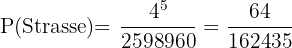 5 Karten werden aus einem Kartenspiel mit insgesamt 52 Karten gezogen. Wie hoch ist die Wahrscheinlichkeit,