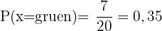 Da es 7 grüne Kugeln gibt, liegt die Wahrscheinlichkeit bei: