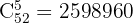 Die Gesamtzahl der verschiedenen Arten, aus 52 möglichen Karten in 5er-Gruppen Karten zu ziehen, liegt bei