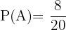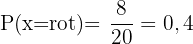 Von 20 Kugeln insgesamt sind 8 rot. Die Wahrscheinlichkeit liegt also bei: