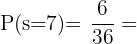 Man erhölt 6 mögliche Optionen. Da die Würfel insgesamt auf 36 verschiedene Arten fallen können, ist die gesuchte Wahtscheinlichkeit: