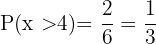 Die Ergebnisse, die höher als 4 sind, sind 5 und 6. Daraus folgt die Wahrscheinlichkeit