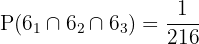 Es gibt nur eine Möglichkeit, drei 6en zu erhalten (6,6,6) und wenn man bedenkt, dass es verschiedene mögliche Würfelergebnisse gibt, beträgt die gesuchte Wahrscheinlichkeit
