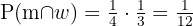Da zwei Ereignisse auftreten können und diese unabhängig voneinander sind, multipliziert man die Wahrscheinlichkeit, dass die Münze "Kopf" anzeigt (1/2) mit der Wahrscheinlichkeit, dass die Münze "Zahl" anzeigt (ebenso 1/2).