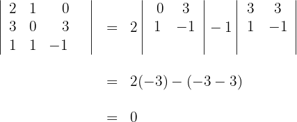 3Da die Determinante null ist, schließen wir daraus, dass die Vektoren linear abhängig sind.